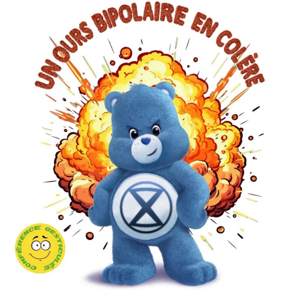 Prenez un utopiste, mettez-lui le nez dans le dérèglement climatique puis trempez-le dans Extinction Rébellion, dans la décroissance, dans les gilets jaunes et dans les zapatistes. Vous obtenez un ours bipolaire en colère capable de vous refaire le monde en une heure et des poussières. Éteignez la télé et laissez Bisounours vous réveiller pour vous faire rêver d’un nouveau monde. C’est le one-man-show pour la vie contre l’argent.