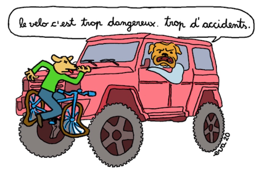 Les cyclistes sont en danger. 50% de l’espace public est dévolu à l’automobile qui ne représente pourtant que 13% des déplacements d’après Le Monde. Deux jeunes cyclistes sont mortes en juillet 2021, l’une renversée par un SUV porte de Montreuil et l’autre par un camion à Boulogne-Billancourt.